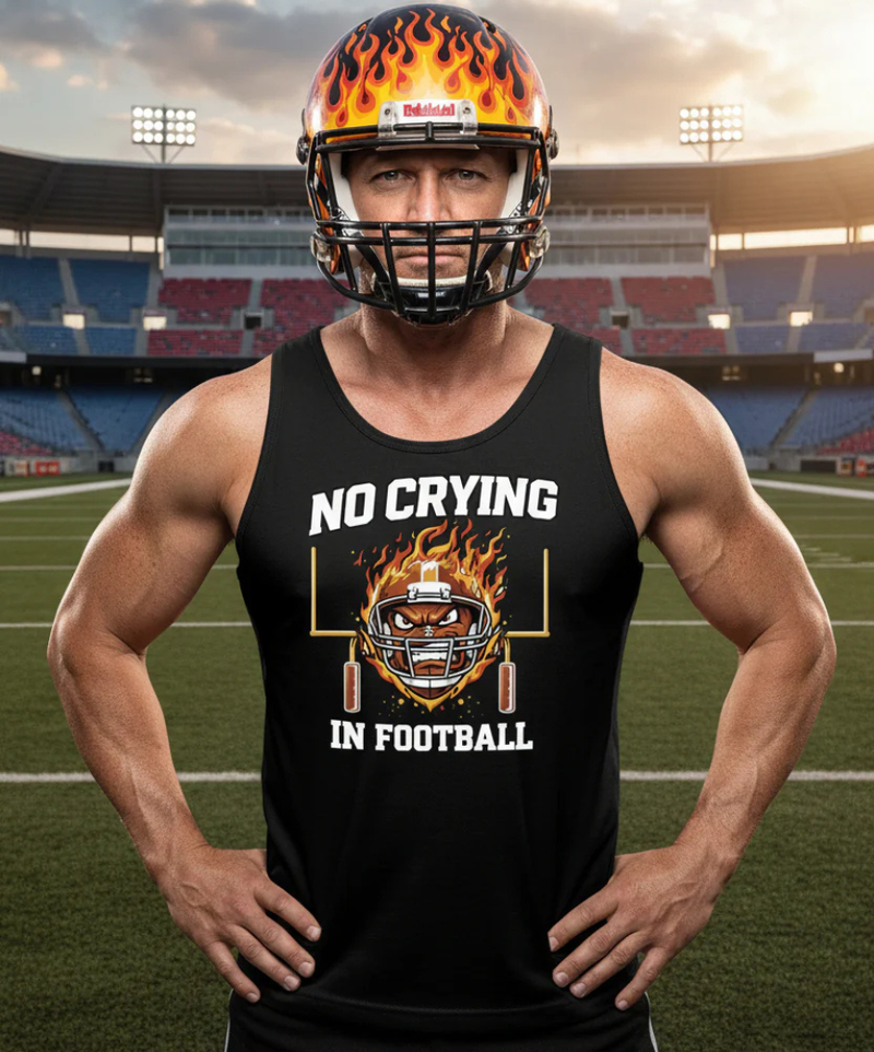 No Crying in Hockey Funny Flame Skull Sports Tank Top